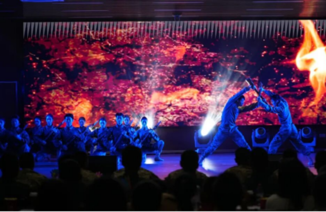 演出还特别为官兵们准备了结合十五运主题曲精心创排的歌舞《气势如虹》,舞步矫健,斗志昂扬,将体育竞技的活力与军人敢打敢拼的魄力巧妙融合,象征着军民携手并肩、共赴未来的坚定信念。